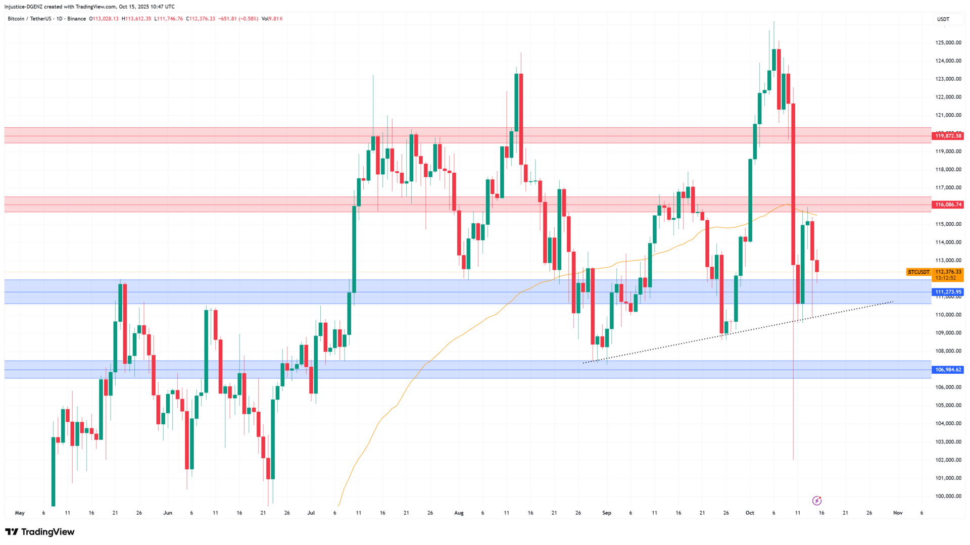 Bitcoin has been repeatedly bouncing off this trendline since the beginning of September, and with 9 touches already it’s only a matter of time until this leads to a break down. If support gives way then its likely this leads to a ~50% wick fill, meaning we run lower to around $107k where our next level of support lies. All that being said, a bounce soon is still likely since we are currently retesting support again. Though, I wouldn’t expect to see that $116k break too easily since we also have our 1D QVWAP lying in the same region.