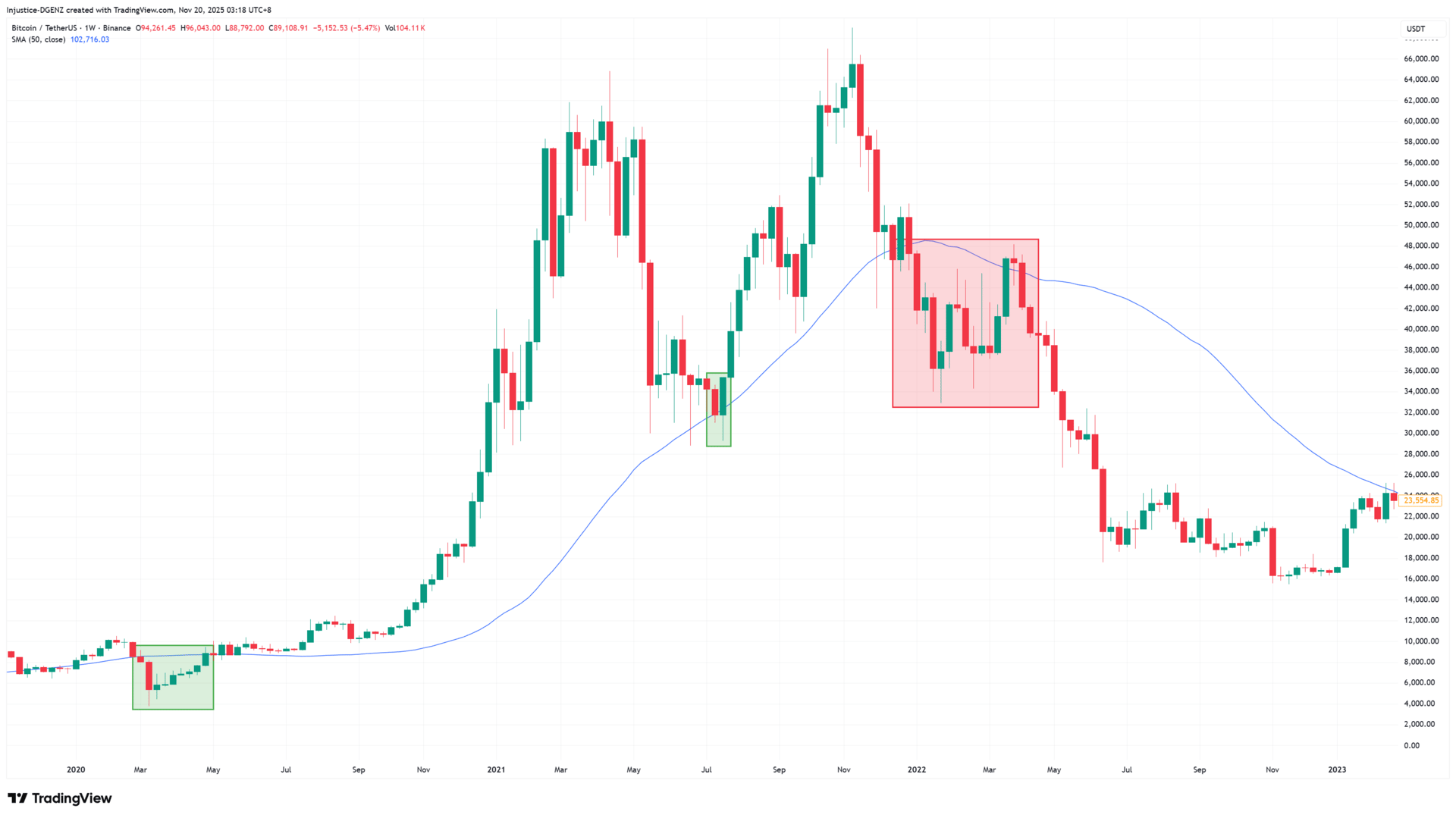 2020: 2 months under the 50W MA… then BTC said “hold my beer” and 16x’d
